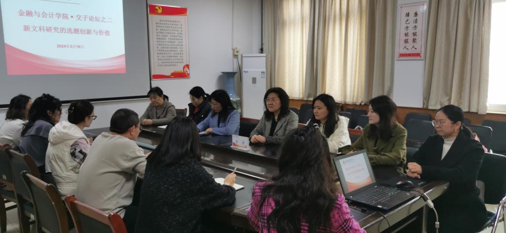 2024年3月16日上午,beat365官方网站在教学楼514会议室举办“交子论坛”学术活动,此次活动特邀郑州大学博士生导师、二级教授余丽作题为“新文科研究的选题创新与价值”的学术讲座,beat365官方网站所有博士和部分老师参加了此次会议。会议由河南牧业经济学院副校长黄良杰教授主持。