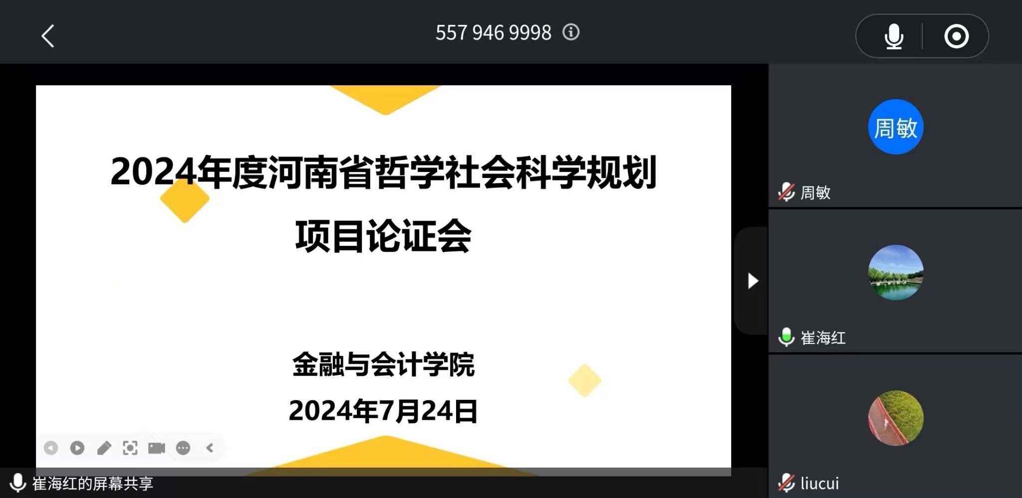 7月24日晚上7:30,beat365官方网站在腾讯会议召开2024年度河南省哲学社会科学规划项目申报论证会,本次论证会特邀中南财经政法大学李四海教授和吕勇斌教授为评审专家,项目负责人及部分教师参加了论证会。会议由beat365官方网站副院长崔海红博士主持。