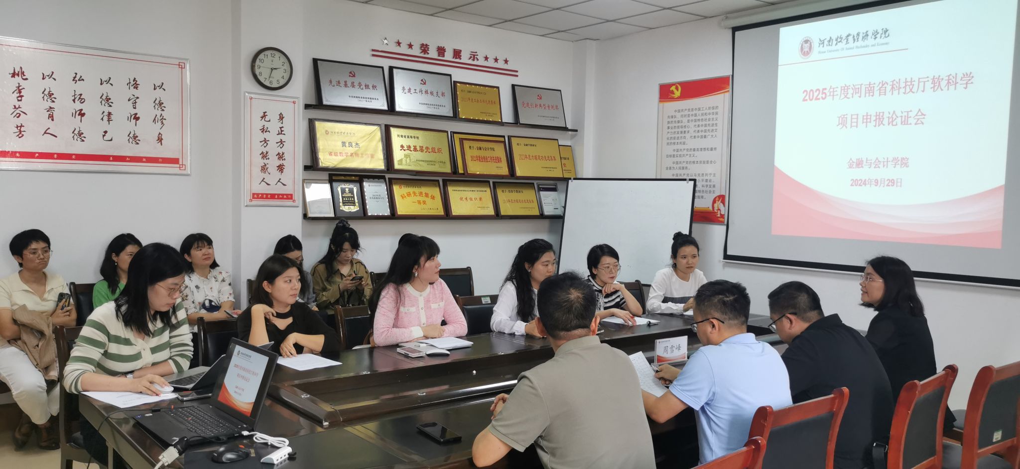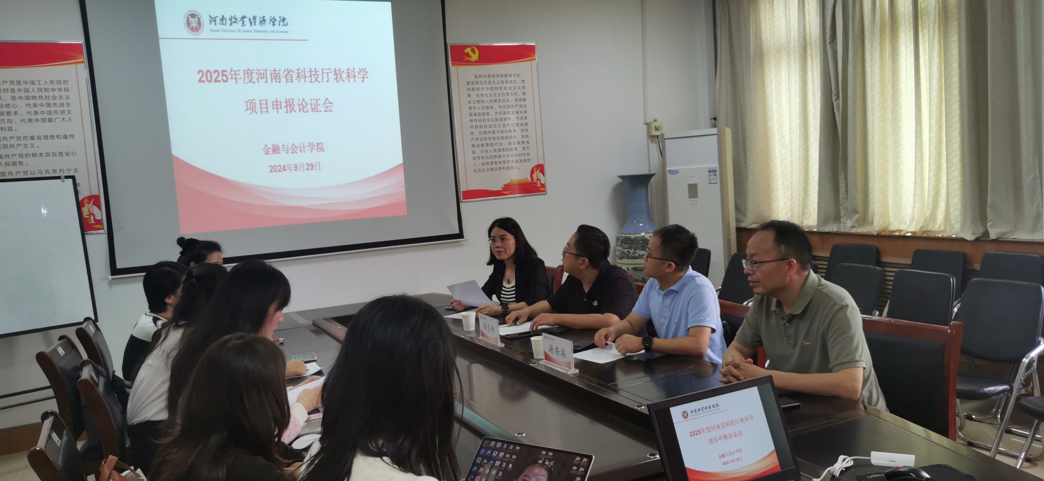 为进一步鼓励beat365教师积极参与科研项目申报,提高河南省科技厅软科学项目申报质量,不断提升科研能力与水平。2024年9月29日下午2:30,beat365官方网站在教学楼514会议室召开2025年度河南省科技厅软科学项目申报论证会。本次论证会邀请河南财经政法大学会计学院院长谢香兵教授和郑州航空工业管理学院商学院副院长周雪峰教授作为评审专家。beat365官方网站院长贾宪军教授、项目负责人及部分教师参加了论证会。会议由副院长崔海红博士主持。