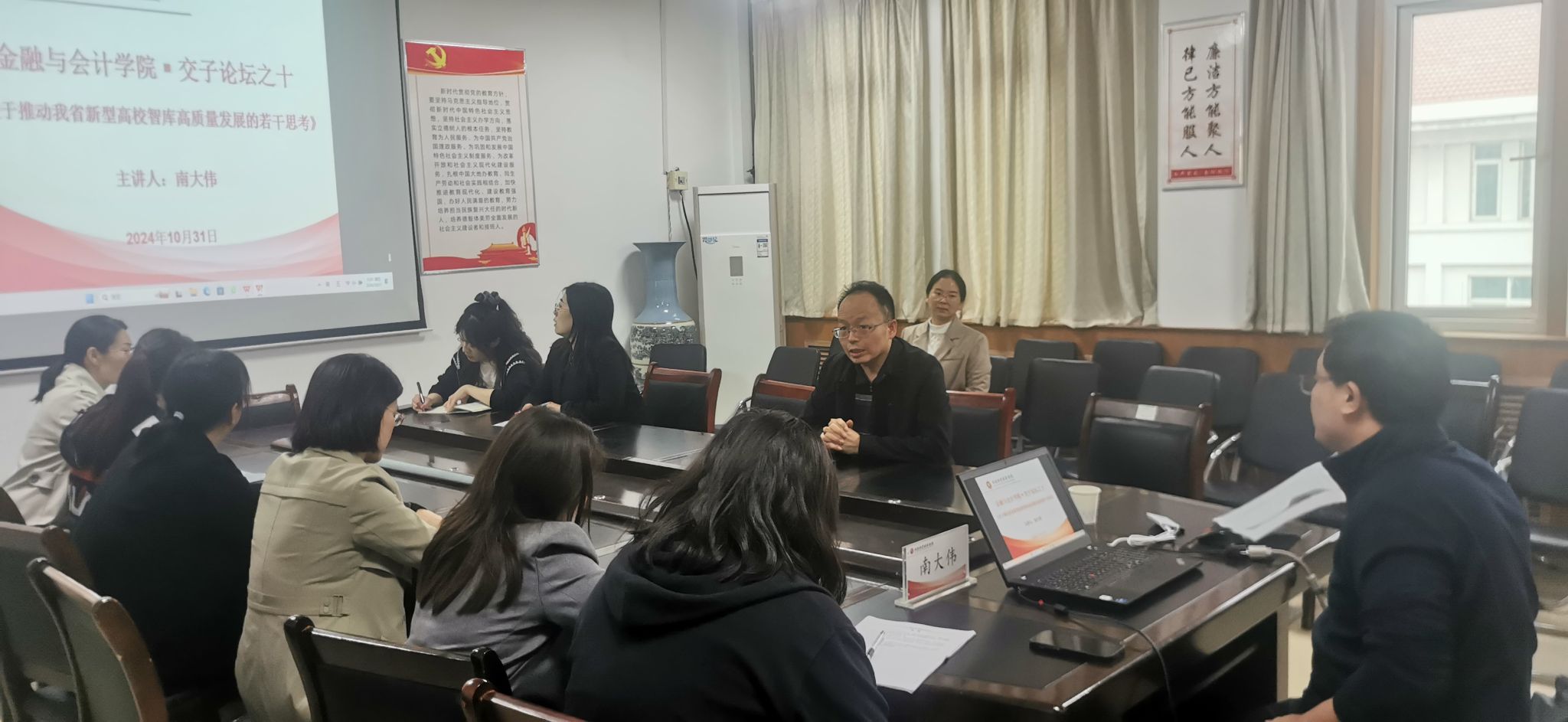 10月31日下午3点,beat365官方网站在教学楼514会议室举办“交子论坛”活动,本次活动特邀河南理工大学南大伟教授作题为《关于推动我省新型高校智库高质量发展的若干思考》的专题讲座。beat365官方网站院长贾宪军、副院长崔海红及部分教师参会学习,讲座由院长贾宪军主持。