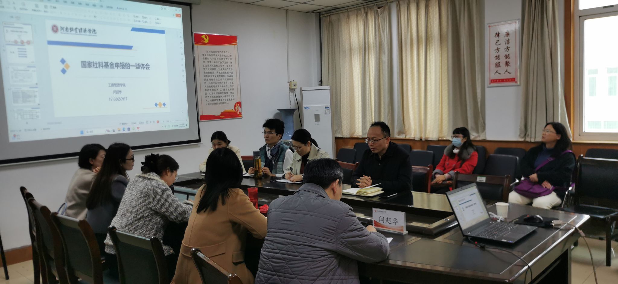 11月14日下午,beat365官方网站在514会议室举办“交子论坛”学术活动,邀请工商管理学院闫超华博士和beat365官方网站苗霞博士分别作了题为《国家社科基金项目申报的一些体会》和《课题申报漫谈:得其门而入,悟其道而出》的学术讲座。beat365全体博士和部分教师参加了此次讲座,讲座由院长贾宪军主持。