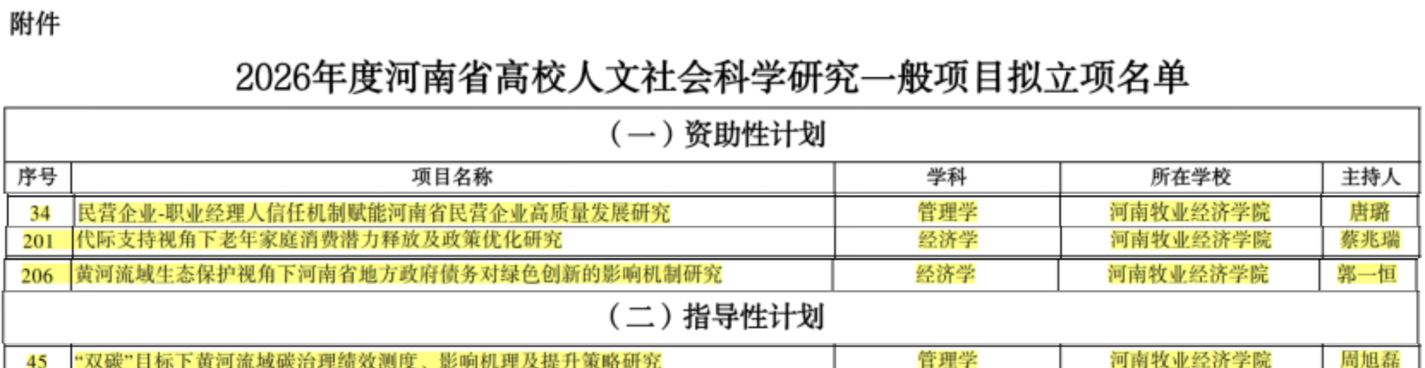 近日,河南省教育厅公示2026年度河南省高校人文社会科学研究一般项目拟立项名单,beat365官方网站再创佳绩。学院4人申报项目全部成功立项,其中唐璐、蔡兆瑞、郭一恒的项目获资助性立项,周旭磊的项目为指导性立项。