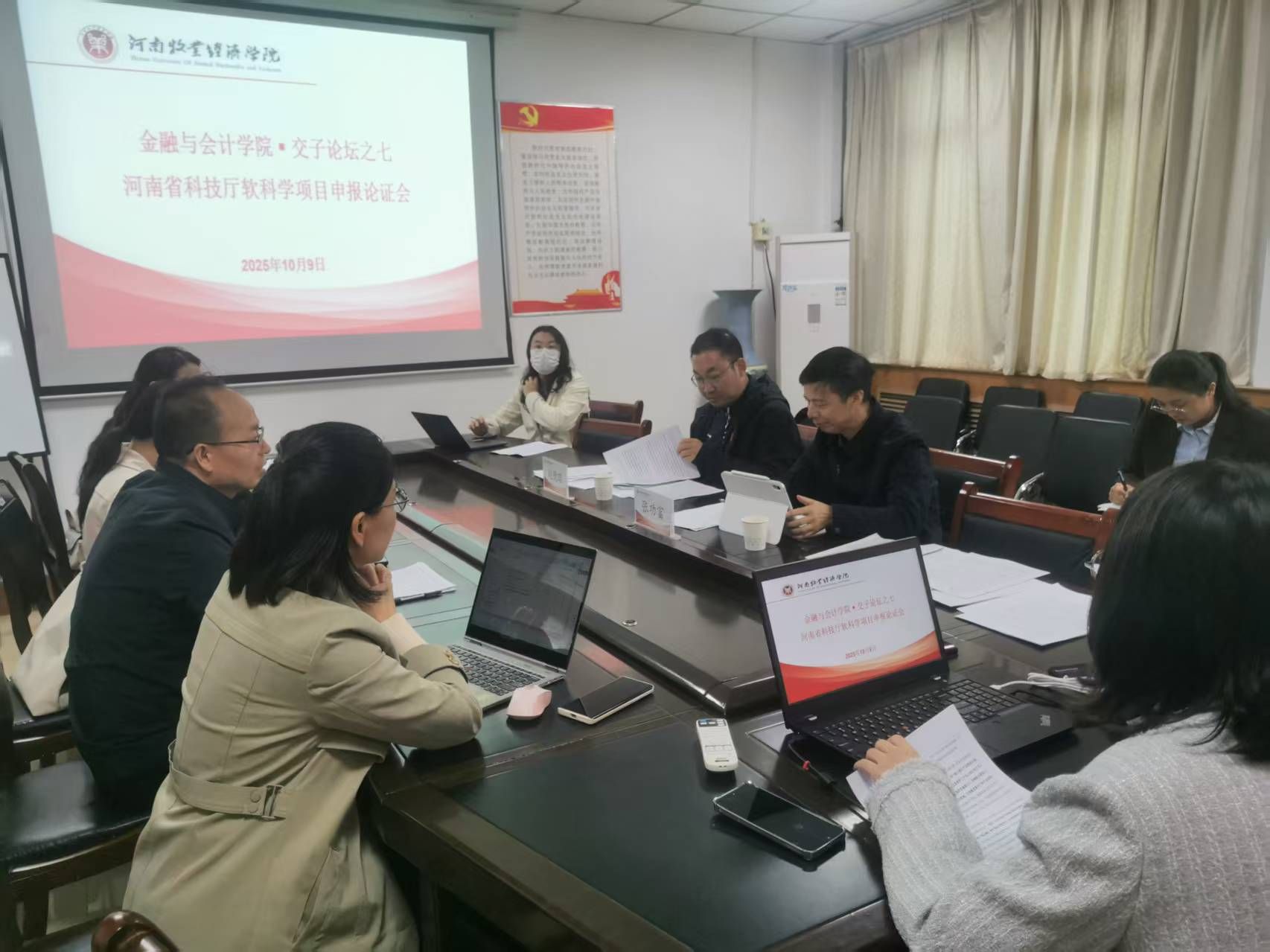 为扎实推进beat3652026年度河南省科技厅软科学项目申报工作,全力提升申报质量,beat365于2025年10月9日下午,在教学楼514会议室召开2026年度河南省科技厅软科学项目申报论证会。本次论证会邀请郑州航空工业管理学院张功富教授和河南财经政法大学赵德昭教授作为评审专家。beat365官方网站院长贾宪军教授、项目负责人及部分教师参加了论证会。会议由副院长崔海红教授主持。