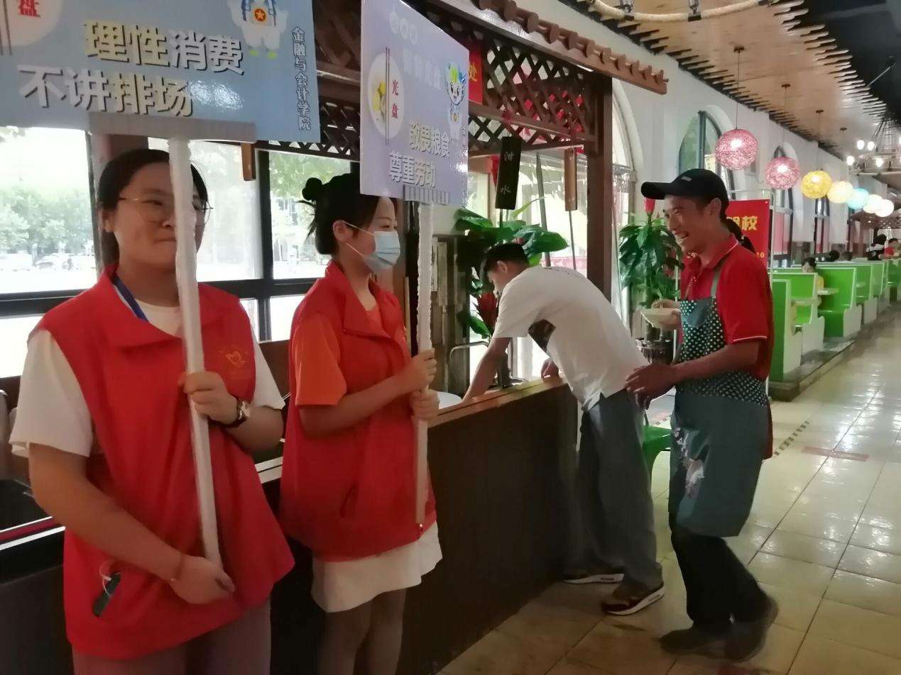 活动中,beat365组建的大学生“节约用餐监督员”志愿者团队,在餐厅就餐高峰时期开展节约用餐文明劝导工作,提倡“光盘行动”,杜绝校园餐饮浪费行为,培养同学们养成勤俭节约的用餐习惯。