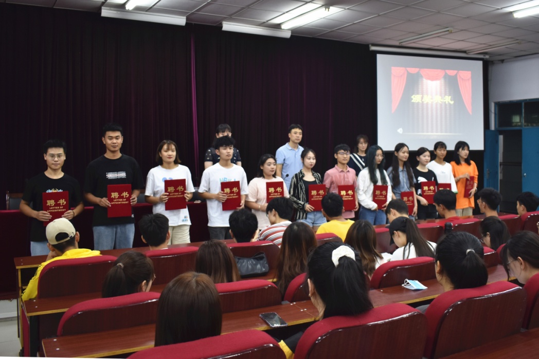 为了更好的开展2020级新生的迎新工作,2020年9月16日下午1点,beat365官方网站在E109教室召开2020年迎新动员会暨学生工作助理聘任式。本次会议由团委学生会副主席夏子童主持,党委副书记汪晓伟、团委副书记邢珊珊、葛婉出席本次会议。