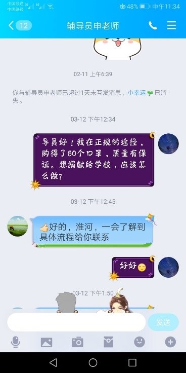疫情之际,防疫物品最为紧缺,同时做好防疫工作也至关重要。各个学校面临着开学的压力,我们都应尽自己的一份绵薄之力,尽自己所能捐献出自己的爱心。“全校一盘棋”,每个人都是其中的一份子,众志成城抗疫情,打赢疫情防控攻坚战,需要我们广大师生的努力与坚持。居家防疫期间,彭淮河同学一直关注学校动态,了解到学校所面临的处境,他积极的想办法,并付诸行动。在防疫物品最为紧缺的时候,经过多方协调,竭尽自己所能筹集到了60个医用口罩并将其捐赠给学校。
