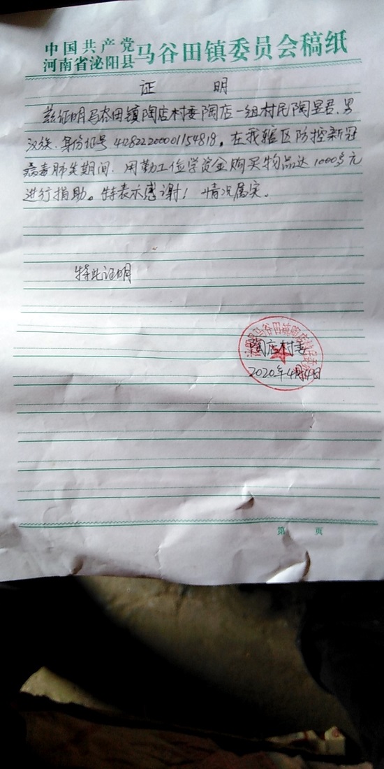 一场突如其来的新冠肺炎疫情,让全体国人猝手不及。身为会计学专业的陶昱君,在国家的号召下,坚持不出门、不聚集、量体温、保持乐观心态。在疫情期间,他认识了白衣天使、最美逆行者。他印象最深的是在我们的身边搭起了一个个防疫卡点,每天冒着危险为我们服务的志愿者们,他们是值得我们所有人敬佩的。看到他们无私奉献身影,他也想尽自己一份力,哪怕是一份绵薄之力。思来想去,他决定,把自己之前两年的勤工俭学金拿出来去购买大米、饮料等物资捐赠给防疫卡点。他只想尽自己最大的力量来与他们同行。他坚信全国人民团结一致,终将会战无不胜。