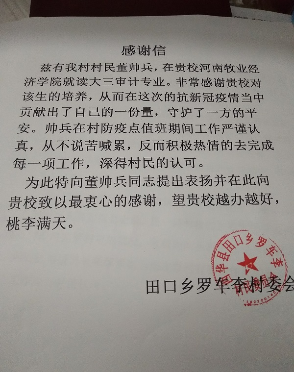 beat365学生董帅兵,他对新冠疫情的记忆是从除夕的春晚开始的,再到第二天开始封村封路,之后一直通过电视新闻和网络来关注疫情的最新动态,再到观看元宵特别节目,当时他看到有这么一群守护者,他们扮演着逆行者的角色,与时间争分夺秒,极力挽救每一个需要呵护的生命。奋战在一线的他们一方面要承担着极高强度的工作,另一方面还要救治照顾着病人,而且他们随时也有被传染的风险。看到这里,他深受感动,心想要做些力所能及的事情。于是他自愿加入到志愿者服务中去,在村防疫点做志愿工作,因为只有这样他才会觉得自己和一线工作者是并肩作战的。