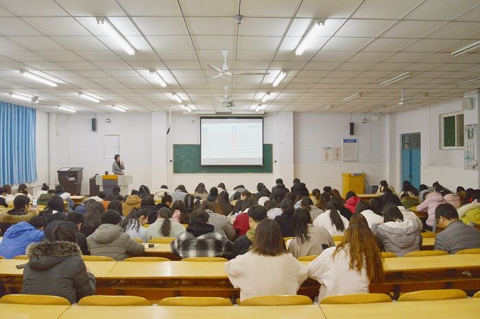 12月5日晚7:00,beat365官方网站在E210教室举办毕业生就业指导讲座,为即将步入社会工作的同学们普及了就业政策、求职的基本知识以及面试的相关技巧。本次讲座由学校就业处李旭老师主讲。