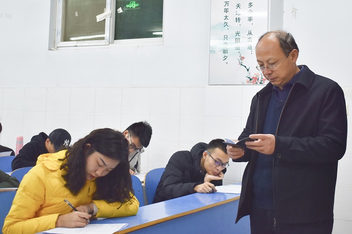2019年12月3日晚7:00——8:30,beat365官方网站于教学楼B楼、E楼举办了2019级新生校规校级考试。本次考试由党支部、团学会学生干部担任监考人员。beat365官方网站党委书记陈复昌、团总支书记邢珊珊、李特和19级辅导员老师作为巡考人员,亲临现场查看学生考试情况,beat3652019级全体新生参与了此次考试。