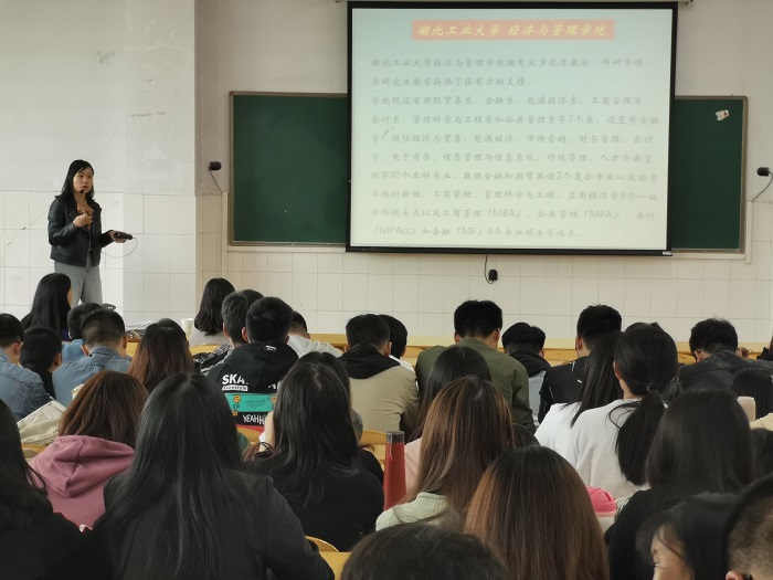 近日,湖北工业大学经济与管理学院副院长杨霞、孙德芝博士来beat365宣传硕士研究生招生工作,beat365学生积极踊跃参加宣讲会。宣讲会由beat365官方网站副院长贾宪军主持。