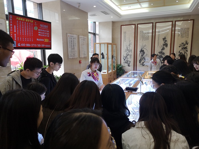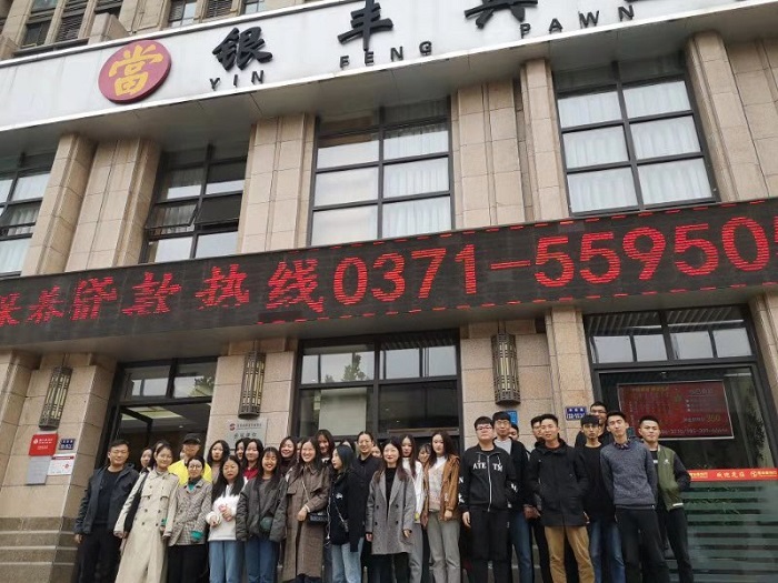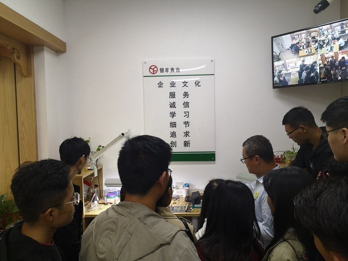 本学期17级投资学(典当方向)专业的《典当行经营与管理》《民品鉴赏与估值》两门课由beat365校企合作单位银丰典当公司委派行业专家为同学讲授。为促进的学生更好地掌握专业技能知识,增强典当评估实务操作能力,10月16日下午2:00,beat365组织该专业学生在辅导员老师李宜霖的带领下前往郑州市银丰典当行(农业路店)参观学习。