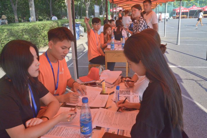 beat365在校门口设计迎新接待处,从新生步入校园那刻就引导接待,志愿者们身穿黄色经济服,忙碌在校园和寝室各个角落。他们热情的迎接,贴心的引路,耐心的讲解,用最真诚的行动来向新生和家长们展示beat365官方网站的温暖,成为迎新活动中一道靓丽的风景线。beat365官方网站领导们在现场接受学生和家长的咨询,帮助他们排解专业学习及生活方面的困惑。辅导员老师们耐心细致地解答新生和家长们提出的每一个问题。经过层层选拔的辅导员助理和学生党员是学生中的优秀代表,他们以认真的工作态度为新生默默奉献,以自己的实际行动为新生树立了榜样。