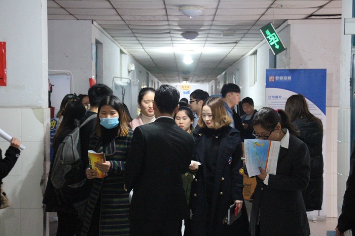 临近毕业季,为了更好地帮助2018届毕业生充分高质量就业,同时满足各类企业对优秀人才的需求,促进学院、毕业生与用人单位之间的交流合作,响应校招生就业处“就业服务季”通知工作安排,在学院领导的关心指导下,经过前期精心筹备和全院师生通力合作,“金融学院2018届毕业生专场校园双选会”于11月16日下午在教学楼B座顺利举行。共有来自省内外以及地市包括国有企业(集团)、民营企业等30余家公司报名参会,涉及保险、典当、证券、投资等行业领域。