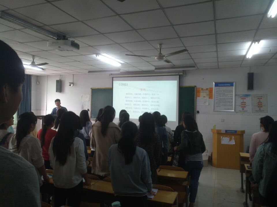 “国学经典诵读活动”以班级为单位开展,以《诗经》《大学》《论语》等国学经典著作为主要内容,在课前进行10分钟诵读。学院投资学专业的同学选择了以《论语》为主要诵读内容,“知之为知之,不知为不知,是知也……”《论语》中的经典内容激励着他们做学问要精益求精;证券与期货专业的同学们选择了《诗经》为主要诵读内容,“投我以木瓜,报之以琼琚”等《诗经》中的句子让他们明白了为人处世要常怀感恩心;保险专业和资产评估典当专业的同学将《大学》中的名篇以PPT的形式展示出来,他们在课前诵读中体会古人的智慧,感受国学经典的魅力。