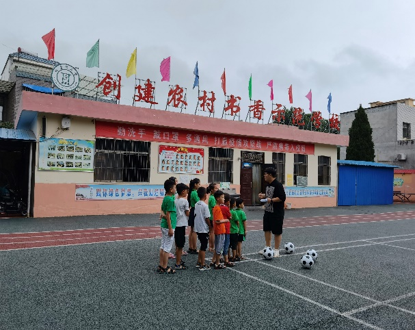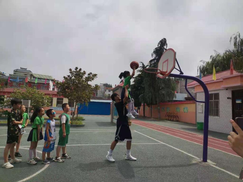 8:30上体育课啦!在篮球课上,帅帅老师根据学生的自身条件,制订了不同的教学策略,让孩子们学习篮球基本功,了解简单的篮球战术;在足球课上,壮壮老师讲解以及示范了基本的足球技巧,如脚内侧踢球、脚背正面踢球、脚背内侧踢球等,深深的让孩子们体会到了足球的乐趣;在散打课上,孩子们在小强老师的带领下,学习了基本的防卫动作,为孩子们健康成长做好铺垫。课间,孩子们围着老师询问一些大学的趣事,看着他们那一双双对外面世界充满渴望的眼神,老师们将自己的所见所闻倾囊相授。