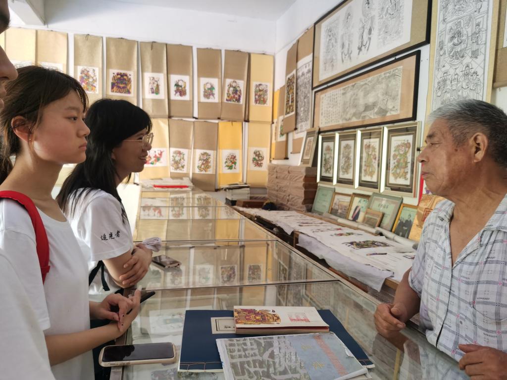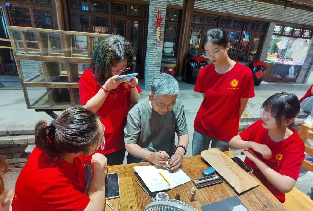 7月8日起,追光实践队正式开始对非遗文化项目和非遗匠人展开调查寻访。通过探寻国家级非物质文化遗产西姜寨盘鼓的踪迹,深入接触盘鼓文化,使队员们有了新的文化体验,为盘鼓文化进入校园打下了基础。实践队还有幸拜访了开封孟氏吹糖人——孟宪伟先生。吹糖人是一项极具有民俗特色的手艺,其拥有悠久的历史,被列入非遗文化。孟师傅在先辈的基础上赓续传承并融入现代元素进行技艺的创新,也为年轻人提供了更多关注和热爱非遗的理由。追光实践队还拜访了中国书法家协会会员,宣和印社副社长,著名书法家、篆刻家刘建国老师。刘老师通过实物展示和生动的解说,将篆刻的基本步骤娓娓道来,让同学们对原本陌生的篆刻艺术产生了强烈的共鸣,也深深感受到非遗技艺薪火相传背后的匠人精神。