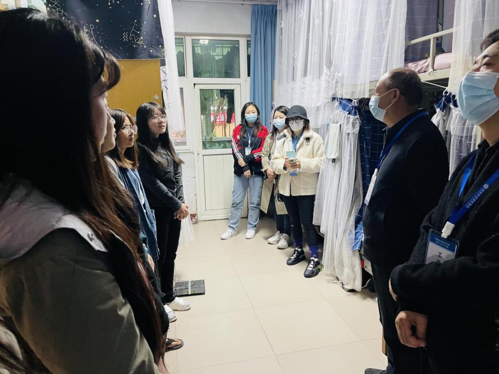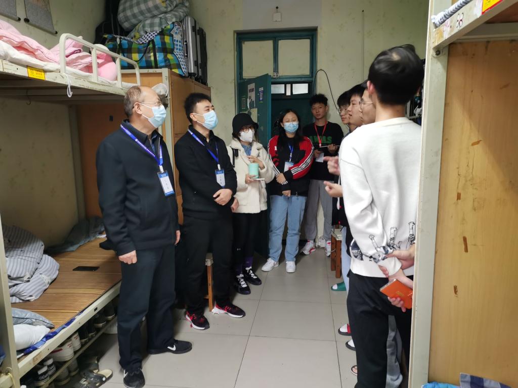 beat365官方网站党委书记陈复昌、党委副书记汪晓伟,团委副书记邢珊珊、葛婉,辅导员李甜老师于下午16点深入学生宿舍深入到学生宿舍了解返校情况,给予关怀,叮嘱学生们要做好宿舍卫生,晒洗被褥,开窗通风,勤洗手,落实学校各项防疫要求,严格遵守学校规章制度,为学习打下良好的基础,取得更大的进步。