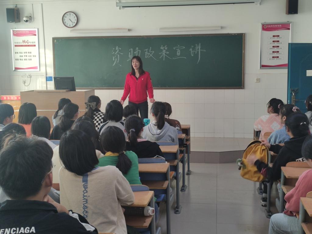 为做好beat3652021级新生秋季学期学生资助工作,切实保障家庭经济困难学生享受党和国家的各项资助政策,根据《河南牧业经济学院家庭经济困难学生认定工作实施办法》,10月18日,beat365官方网站在A302、A303、A304、A305教室举行21级学生资助政策“两节课”宣讲会,由邓桐玲老师主讲,所有新生参加了本次宣讲会。
