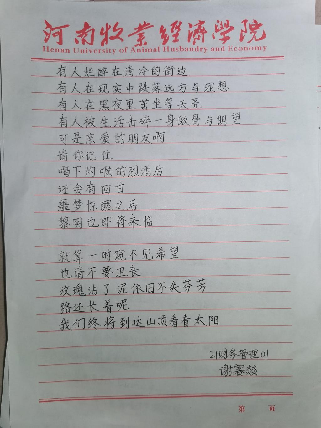 中国书法,字里千秋。为提高学生们的艺术修养与审美情趣,弘扬中华优秀书法文化,beat365官方网站心教部于十月二十九日推出为期三天的“关爱心灵,秀出自己”线下活动。此次活动面向beat365全体学生,在同学们一幅幅气韵贯通的书法作品中,我们深切地感受到了他们昂扬向上的斗志与积极乐观的人生态度。