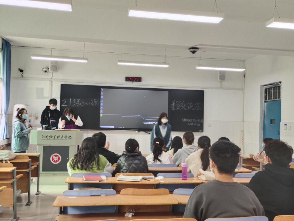 本次交流会分为两部分,首先心教部与各班心理委员进行自我介绍。其次心教部从心理健康的重要性、明确心理委员的职责与工作、正确认识自我和周边环境、心理健康调查与认识心理误区四方面展开。交流会中心理委员们认真听取建议,获取更多有关心理方面的知识,明确自身工作重要性,为同学们更好地提供帮助。