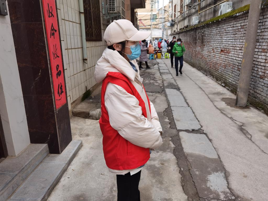 邹靖同学的家乡在河南许昌,是此次疫情防控的重点地区。为了配合疫情防控工作,她所在社区开展全员核酸检测工作。在确保自身安全的情况下,她也积极参与到社区核酸检测工作中。在居民核酸检测过程中,作为志愿者帮助填写表格和维护现场秩序,推动核酸检测的顺利进行。在此次志愿活动中,她体会到一线工作人员的辛苦,同时希望能早日战胜疫情,许昌加油,河南加油,中国加油!