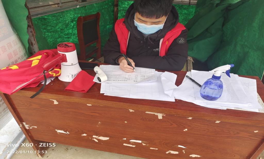 没有被禁锢的城,只有不离开的爱!谷敏杰同学积极参与河南沁阳志愿服务活动,在得知村委需要青年志愿者时积极响应,作为新时代大学生,应该肩负起时代赋予的责任,服务人民与国家。他严格按照要求检查进出车辆,按照要求检查行程码,测量体温,登记村民信息等做好疫情防控相关工作,与其他志愿者们一起用实际行动诠释着防疫决心,为打赢疫情防控攻坚战贡献青春力量。相信我们终将战胜疫情,寒冬终将过去,病毒终将退散。