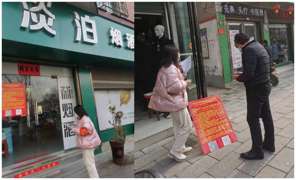 米姝燏同学的家乡是南阳南召。假期返乡后,她看到家乡招募大学生志愿者的通知,便第一时间报名参加,成为了一名防控抗疫志愿者。她按照安排,与当地工作人员一起对返县人员以及各商铺门店进行排查登记,并对群众宣传防疫知识。她表示:作为一名新时代大学生,虽然不能在第一线,但希望通过自身的力量做些力所能及的事,也是自我价值的一种体现。
