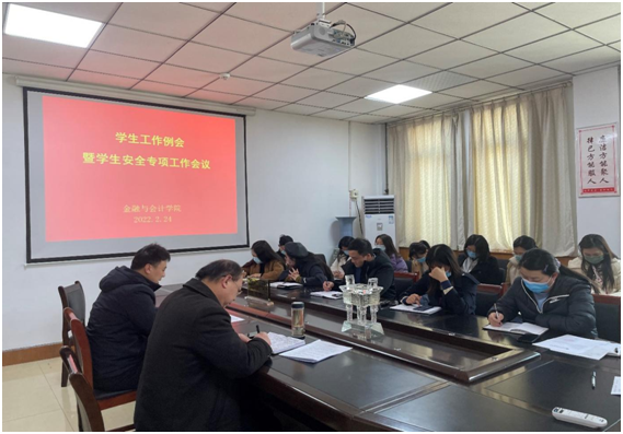 为贯彻落实好学校关于学生安全稳定专项工作的各项要求,扎实做好安全稳定工作,beat365官方网站于2月24日下午,在514会议室召开新学期学生工作例会暨学生安全稳定专项工作会议。学院党委书记陈复昌、团委副书记葛婉及全体辅导员参加。会议由学院党委副书记汪晓伟主持。