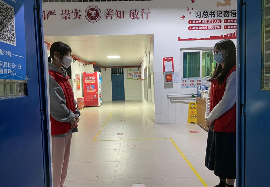 广大学生党员主动请缨参加志愿服务,志愿送餐服务队的成员们在做好个人防护的同时,每天接力为防疫管控的宿舍送餐;志愿者在宿舍门口设立党员服务岗,时刻提醒同学们非必要不外出,外出要正确佩戴口罩等。他们以实际行动践行初心使命,争做健康校园的守护者。