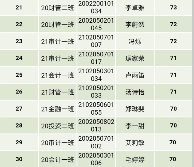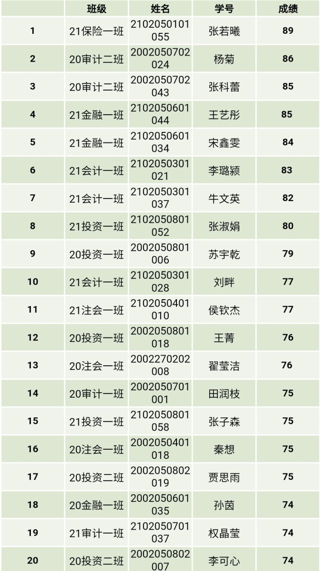 经过了“忆峥嵘团史,做优秀团干”的第一阶段——团干业务知识大比拼,全体团干从中认清了自身的问题,找到了今后继续努力的方向。同时,也将恭喜本次考试成绩优异的30位同学晋级到竞赛的第二轮——“青”听我来讲微团课大讲堂(名单如上),望各位团干再接再厉,在第二轮竞赛中取得更加优异的成绩。