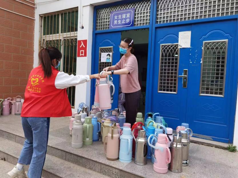 下午15点,匆匆扒了两口饭的老师们又开始了接力给学生们的水壶消杀...接热水......