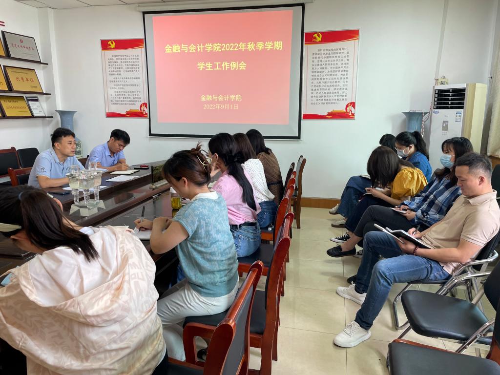 9月1日上午,beat365官方网站在514会议室组织召开2022秋季学期学生工作例会。学院党委副书记汪晓伟,学院团委书记葛婉、副书记顾自卫、刘慧莹,全体辅导员参加会议。会议由党委副书记汪晓伟主持。