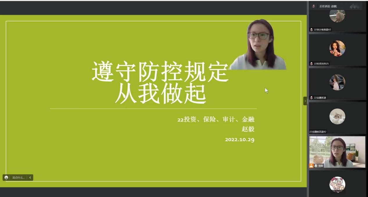坚定信心战疫情,同舟共济筑防线。目前疫情形势严峻,为进一步落实学校疫情防控政策,加强疫情期间广大学生疫情防控意识和责任担当。beat365官方网站结合当前疫情防控形势,于10月29日-30日由各班辅导员召开关于疫情防控的线上主题班会。
