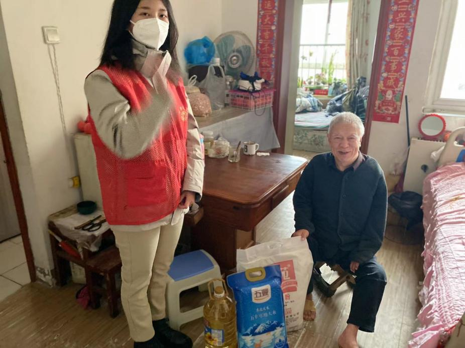 王堂瑭同学积极响应学校帮扶困难群体志愿服务活动的号召,报名参加当地的志愿者服务队,给社区的孤寡老人送去春节慰问物资,送去冬日的温暖。通过这次的慰问活动,不仅让她切身体会到“奉献,友爱,互助,进步”的志愿精神的精髓所在,还从中感受到了国家和政府对于弱势群体的重视与关怀。