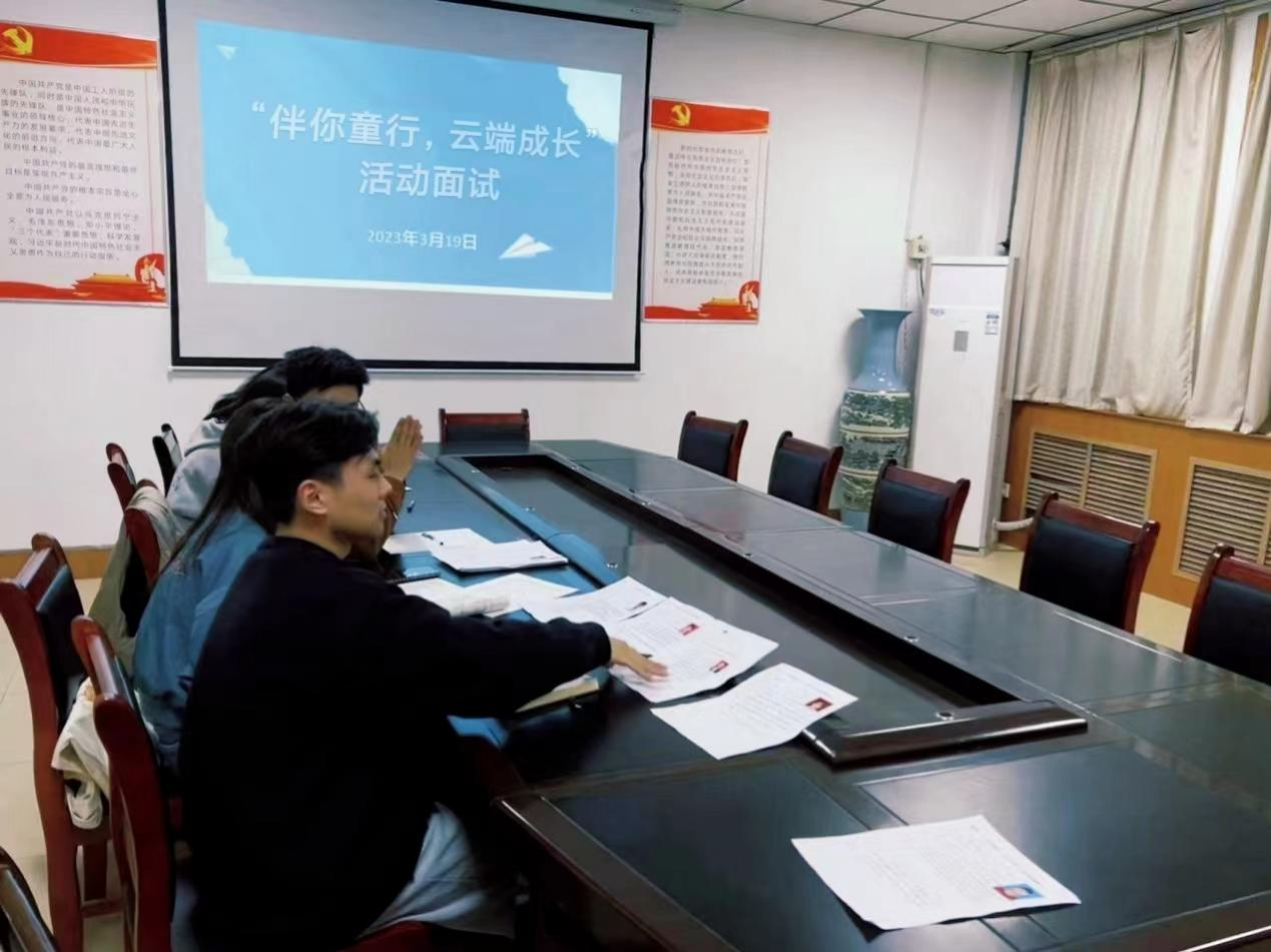 为贯彻落实志愿精神“奉献,友爱,互助,进步”的深刻内涵,推动实践育人,鼓舞青年力量,beat365官方网站乐阳志愿者协会以线上+线下相结合方式开展“伴你童行,云端成长”助童助学志愿服务活动。为更好地了解报名同学的情况,选拔优秀志愿者,乐阳志愿协会于3月19日晚于514会议室进行活动面试。