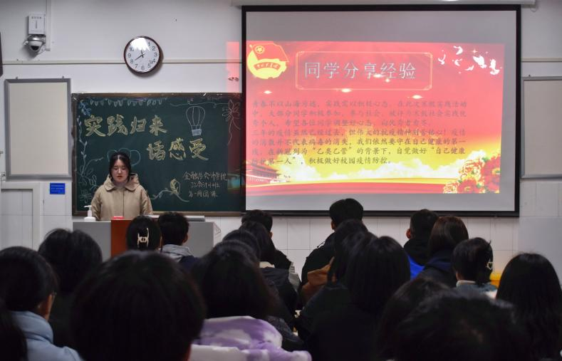 积诚泮群疑,实践激众媮。寒假社会实践活动随着新学期的开始而落下帷幕,为向同学们展示实践活动中优秀的实践范例,同时教育引导同学们在新冠列为“乙类乙管”的背景下,自觉做好“自己健康防护第一人”。beat365官方网站于2023年2月17日组织各团支部进行了“实践归来话感受”的线下主题团课。