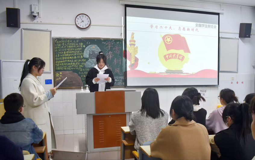 伴随着嘹亮的团歌声,各团支部组织的团课相继开展。在本次团课中,各团支部组织同学认真学习党的二十大主要内容,深刻理解和学习党的二十大精神以及雷锋精神,开展典型人物事迹学习、志愿服务项目分享,积极鼓励同学们参与学雷锋志愿服务活动,大力弘扬雷锋精神,促进同学们在实践中提升能力素质,激励青年学生树立远大理想,培养良好品德。