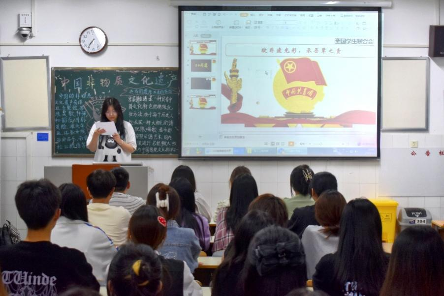岁月失语,为石能言;薪火相传,方能永存。多姿多彩的非物质文化遗产见证了绵延不息的文化传承,是我们宝贵的精神财富。为了向同学们展示非遗文化的魅力,激发同学们对非遗文化的兴趣,深入挖掘非遗文化的内涵,beat365官方网站于5月11日晚开展“绽非遗光彩,承吾辈之责”为主题的团课活动。