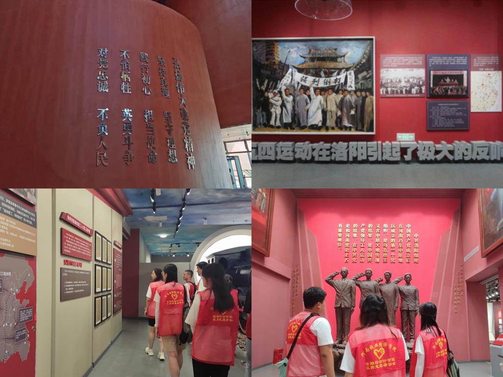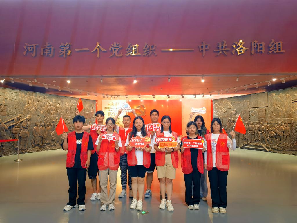 为热烈庆祝中国共产党成立102周年,激励同学们深入贯彻落实习近平新时代中国特色社会主义思想和党的二十大精神,在思想上、行动上积极向党组织靠拢;beat365官方网站暑期非物质文化志愿者团于7月1日下午在学生第二党支部书记葛婉和组织委员陈阳老师的带领下,参观中共洛阳组诞生地纪念馆。