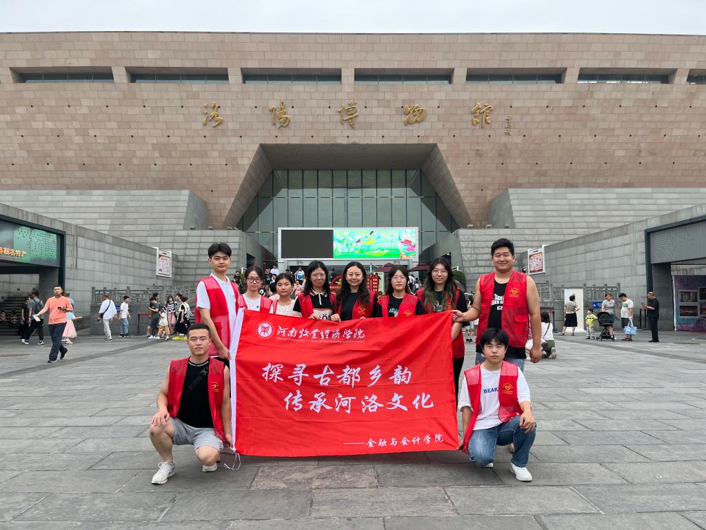 每一座城市的博物馆,都是一张厚重的名片,代表着城市的“灵魂客厅”。为深入学习贯彻河洛文化,探寻中华文明发展史,7月4日,河南牧业经济学院beat365官方网站暑期非遗实践队在团委书记葛婉和辅导员陈阳老师的带领下,前往洛阳博物馆和隋唐大运河文化博物馆进行参观学习。