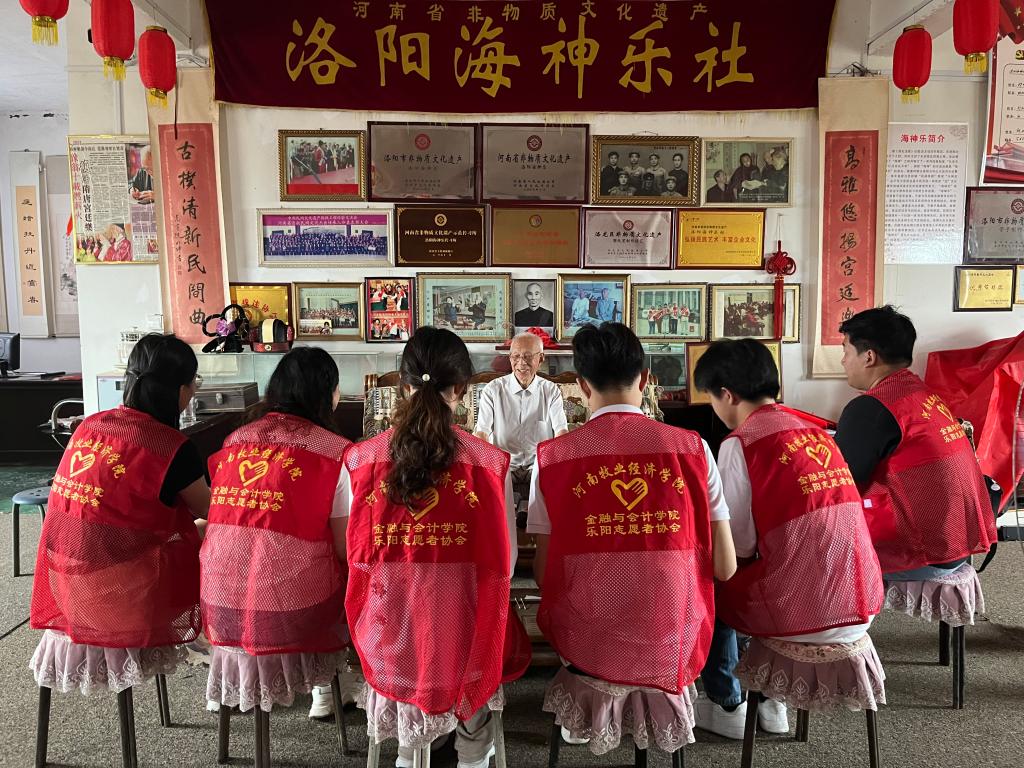 “海神古乐出宫廷,千年遗韵在洛城”。7月5日上午,beat365官方网站暑期非遗实践队前往位于洛龙区的海神乐社,拜访年过八旬的省级非遗项目洛阳海神乐第十代传承人郭红运先生。