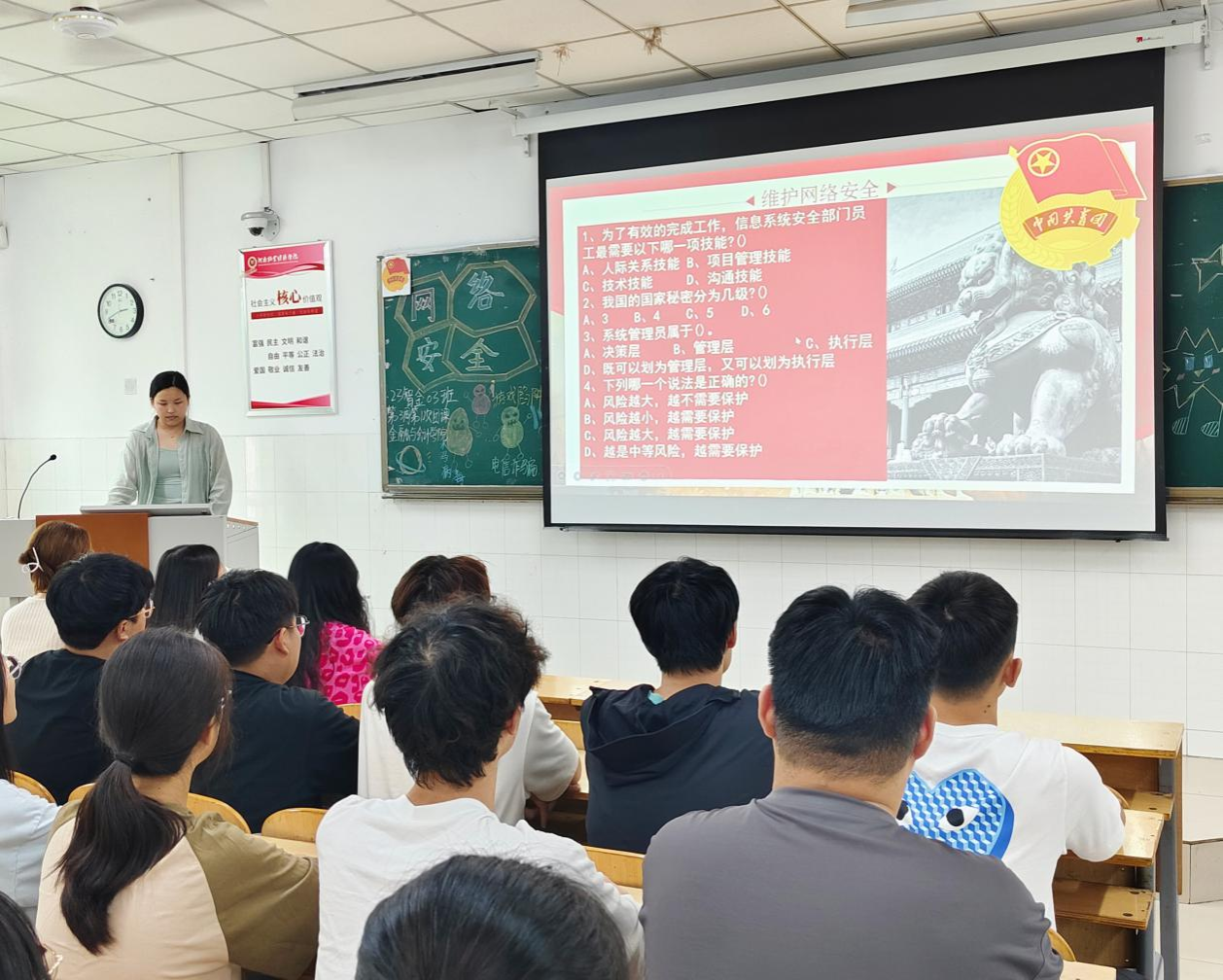 首先,各团支书以网络安全为主题,对同学们进行提问,旨在提升同学们对网络安全重要性的认识,掌握必要的网络安全技能,并能在日常生活中积极践行网络安全。然后,一些同学分享相关故事让其他同学引以为戒,以此来达到本次团课目的。
