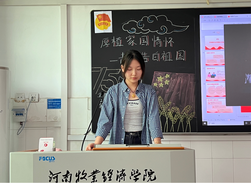 伴随着嘹亮的团歌声,各团支部的团课活动相继展开。首先,各团支书向同学们播放了爱国主义教育的相关影片,通过影片让同学们感受伟大祖国的蓬勃发展。接着,团支书邀请同学们写下有关诗句,用文字表达自己对祖国的热爱与祝福。最后,各团支书邀请同学们分享自己心中对祖国的憧憬,鼓励广大同学拼搏进取,为国奉献。