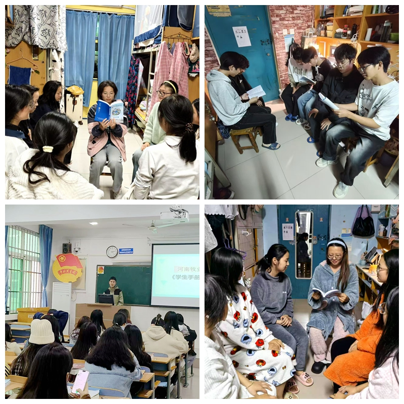 活动分为集中学习和自学两种形式。集中学习阶段,全体24级新生辅导员利用课余时间,通过召开主题班会形式对重点内容进行领学和辅导,主要包括《河南牧业经济学院学生表彰奖励实施办法》《河南牧业经济学院违纪处分管理办法》《河南牧业经济学院学生住宿管理规定》《河南牧业经济学院学生考勤管理办法》等。辅导过程中,各辅导员老师首先强调了学好学生手册的重要性,并结合自身学生工作经历和具体案例进行讲解,给同学们以深深的警示、警醒。自学阶段,各班同学利用晚自习或课余时间进行学习,还通过主题讨论、抢答赛等多种形式加深同学们对《学生手册》相关知识的掌握。下一步,beat365还将开展《学生手册》知识考试,全面考查学生对《学生手册》的了解程度。