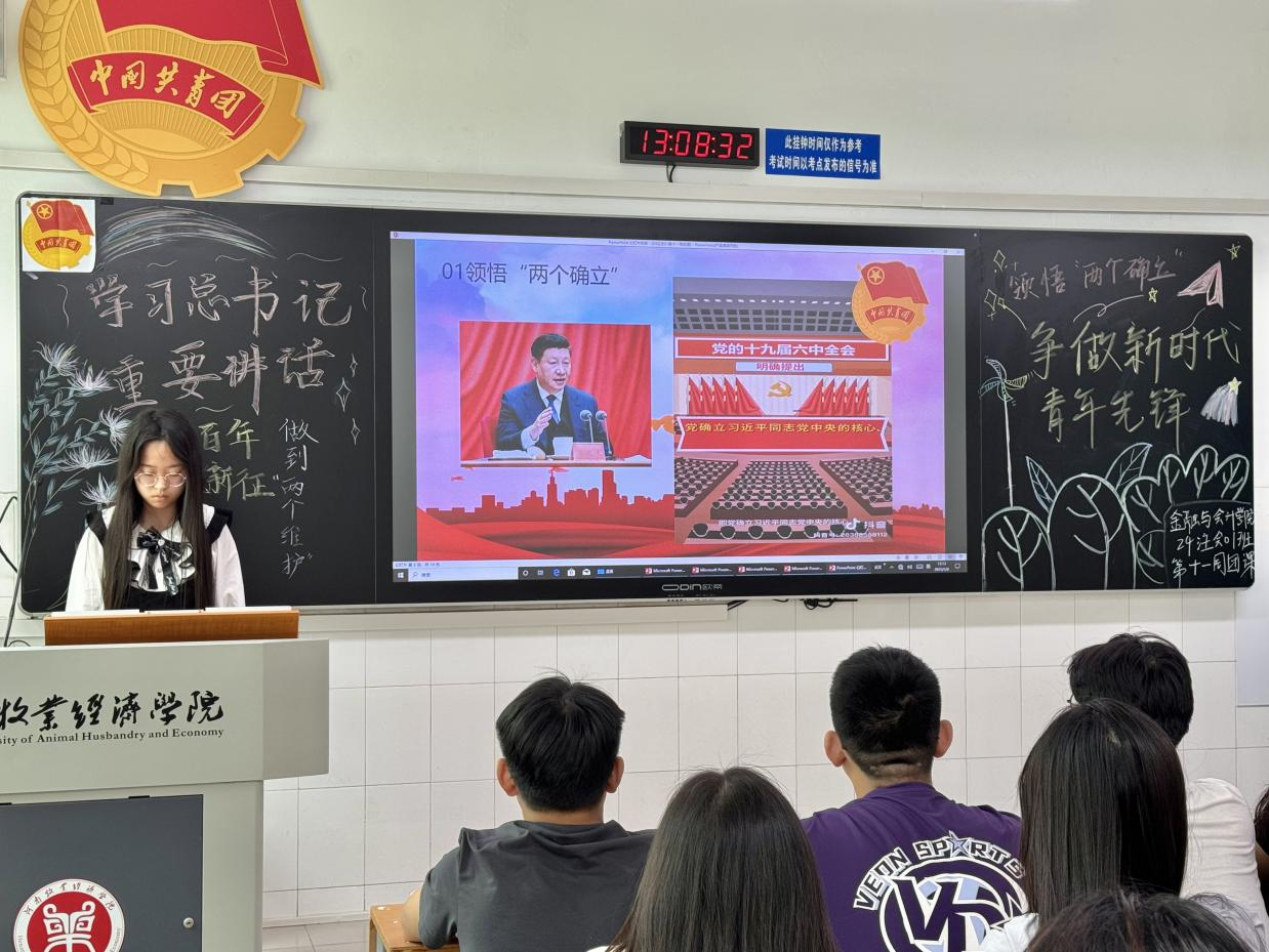 本次团课在嘹亮的团歌声中拉开帷幕。首先各团支部组织团员青年观看《五四特辑:浪涌如歌》专题视频,重温五四精神与青年使命;重点研读习近平总书记关于《激励新时代青年在中国式现代化建设中挺膺担当》的重要讲话,结合谢依特小学支教志愿者“扎根边疆、奉献教育”的事迹,深入探讨青年一代如何在服务国家战略中实现人生价值。在学习过程中,各班通过实际例子以及播放视频来加强大家的理解。最后,通过互动问答,进一步巩固了团员青年所学的知识,同时检验学习效果。