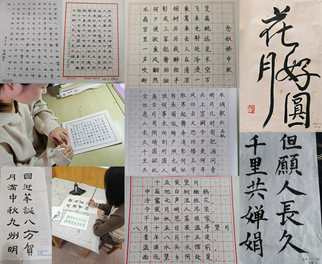 本次大赛面向全院学生展开,活动时间为10月4日至6日。自活动启动以来,同学们踊跃参与,围绕中秋团圆、家国情怀、校园生活等多个维度展开创作,同学们在书写中感悟、在创作中传承,于笔墨流转间树立文化自信,在节日氛围中凝聚情感认同。一幅幅作品或工整清秀,或洒脱豪迈,既有楷书的端庄典雅,亦有行书的流畅自如,隶书的古朴浑厚,展现出青年学子对传统文化的理解与诠释。