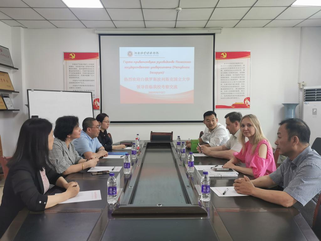 2023年6月12日,白俄罗斯共和国波列斯克国立大学校长杜奈·瓦列里·伊万诺维奇一行4人莅临beat365考察交流,beat365院长黄良杰、副院长王培玲、邵翠丽和崔海红出席了交流活动。