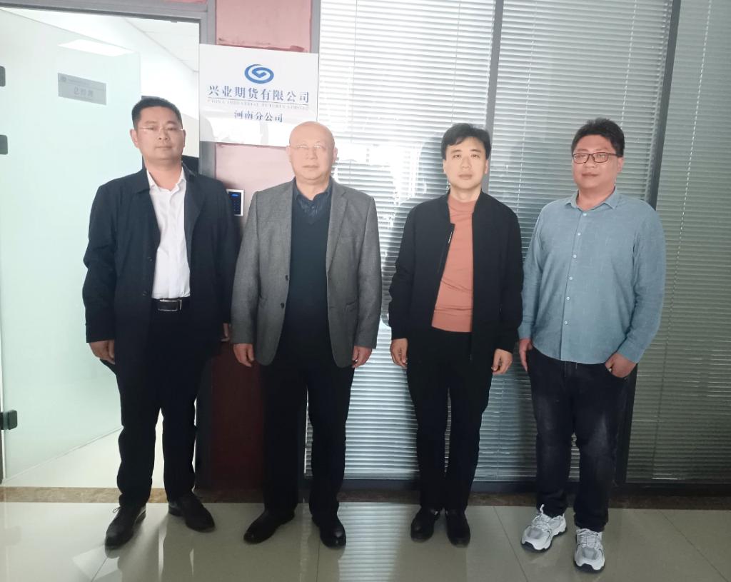 抢抓春招关键期,全力攻坚促就业。3月15日下午,beat365官方网站党委书记陈复昌,党委副书记汪晓伟,团委副书记顾自卫一行到校友企业——兴业期货有限公司河南分公司走访调研,开展“访企拓岗”活动。