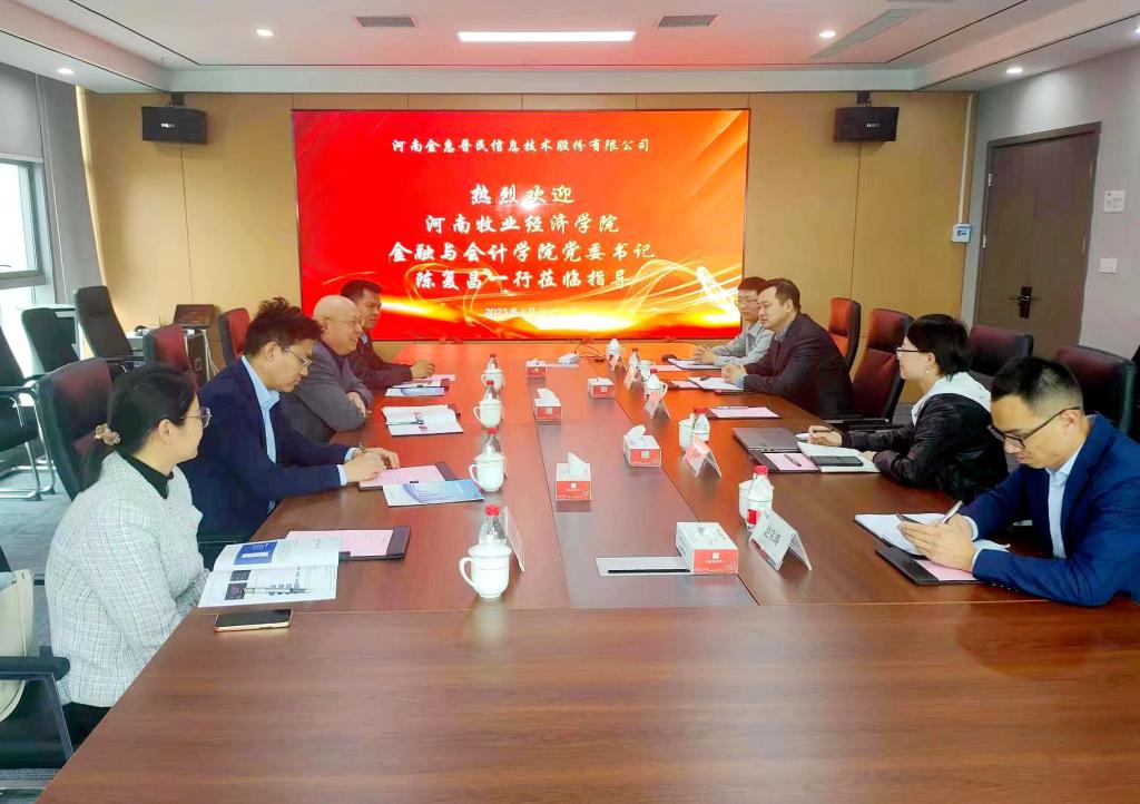 为进一步拓宽毕业生就业渠道,助力毕业生充分就业,4月21日上午,beat365官方网站党委书记陈复昌,投资学教研室主任王豪杰,团委副书记顾自卫一行前往河南金惠普民信息技术股份有限公司进行调研考察。公司副总经理王凯、运营部总经理贺亚男、普惠金融部总监于迎冬等热情接待了陈书记一行。